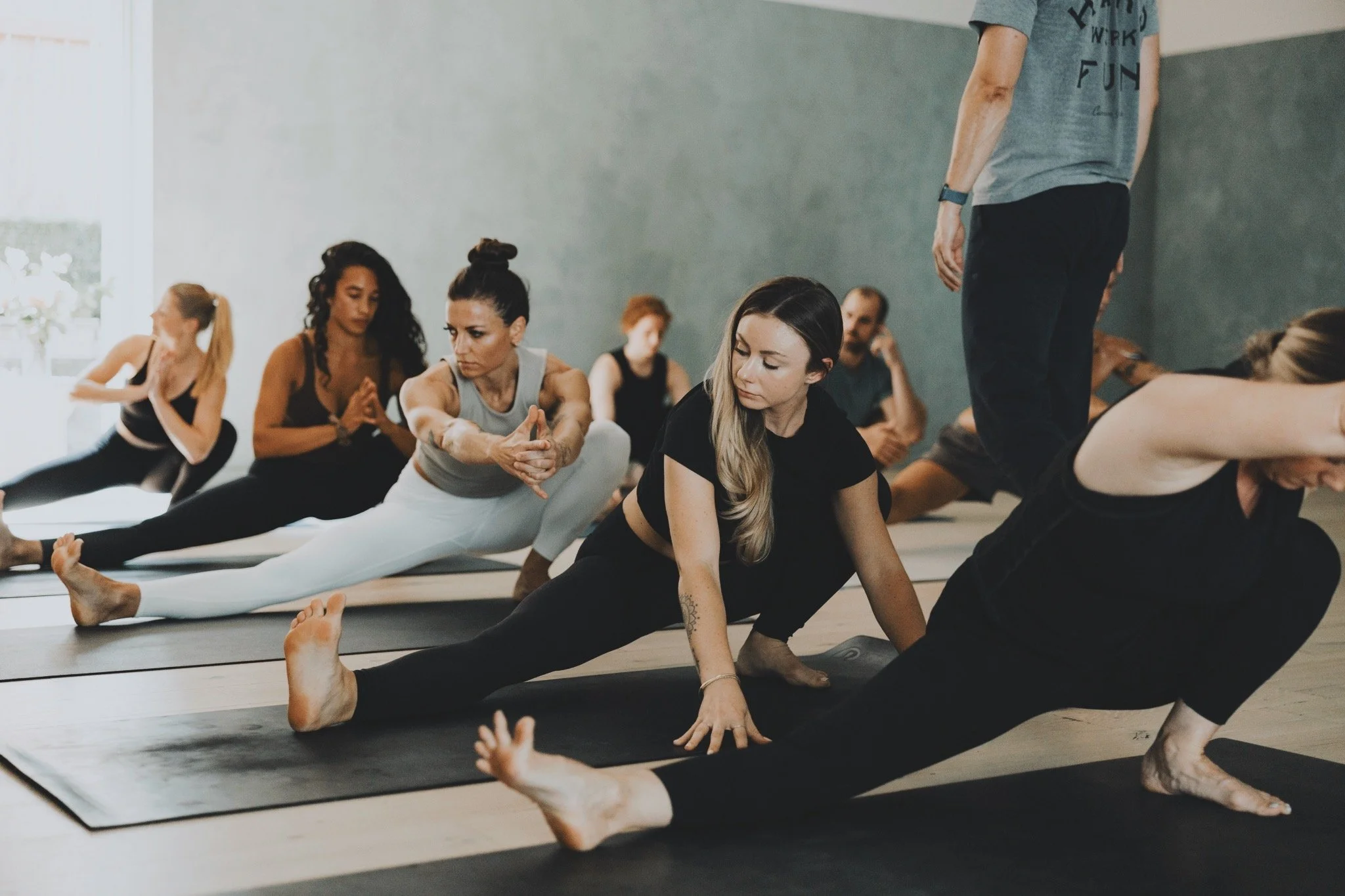 Ready to come flow with us in the studio? Download one of our booking apps below to make your experience seamless. We recommend booking ahead to ensure your spot. When you arrive, our friendly desk staff will help you out, and our team of experienced teachers will guide you through an enjoyable class.